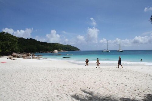 프랄린 아일랜드에 위치한 이 해변 별장의 경우 골프장 옆에 있으며, 2km 이내에는 그랜드 앙스 비치, Cousin Island 등이 있습니다. Petite Anse Kerlan의 경우 3.9km 거리에 있습니다. 해변에 위치한 이 별장에는 운동장 및 바비큐 그릴 등이 마련되어 있어 편리합니다. 총 6개의 별장에는 케이블 채널 시청이 가능한 LED TV가 있으며, 냉장고, 쿡탑 및 전자레인지를 갖춘 주방이 있습니다. 또한, 가구가 비치된 발코니 또는 파티오, 거실 및 전용 뜰도 이용하실 수 있습니다.